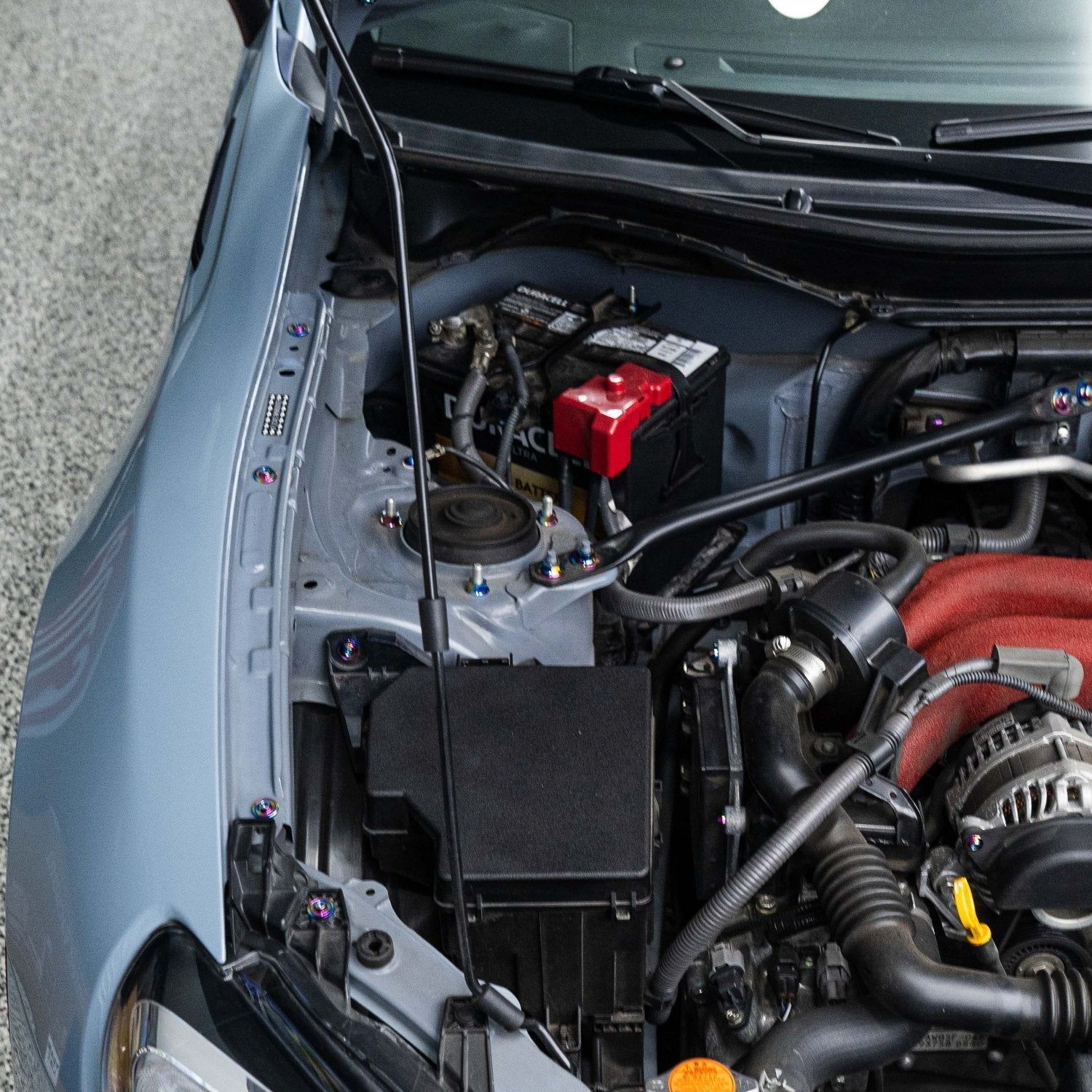 Transform the appearance of your engine bay and say goodbye to rusty bolts with the JDC Titanium Battery Tie-Down Nuts! Designed exclusively for the first generation FRS/BRZ/86 platform, this kit is designed to match the OEM specs perfectly.