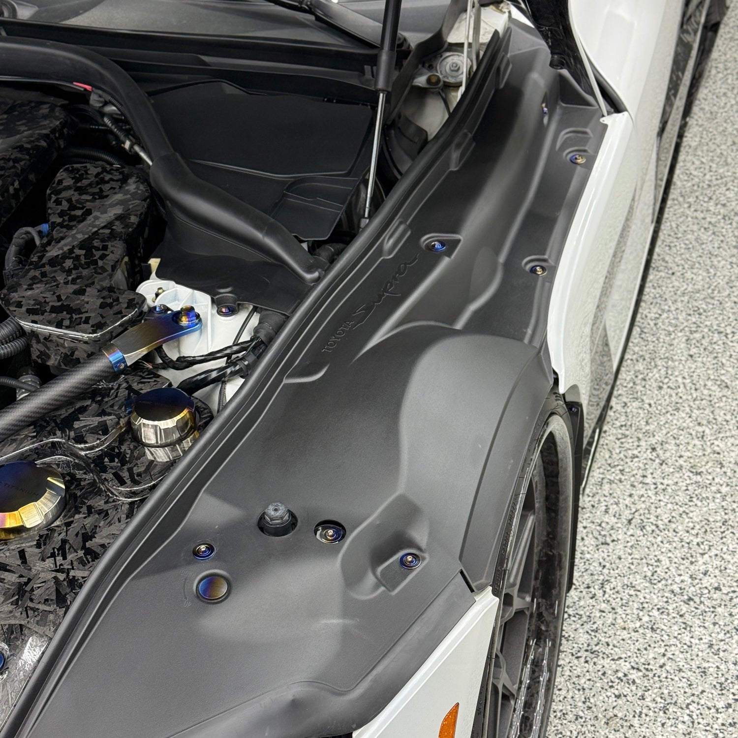 Upgrade your A90/91 Supra with the JDC Titanium Fender Plastic Clip Replacement Kit. Say goodbye to flimsy plastic clips and hello to durable titanium that adds a touch of style to your ride. This kit is the perfect combination of functionality and style. Expertly crafted for the ultimate upgrade.