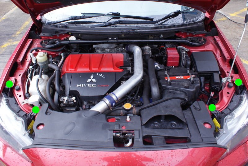 The JDC titanium Evo X headlight hardware kit is made from Ti6Al-4V (Grade 5) titanium. This kit replaces your ugly stock hardware with beautiful titanium that will outlast your car itself! Titanium is around 45% lighter, way stronger, and will not corrode like your stock steel bolt