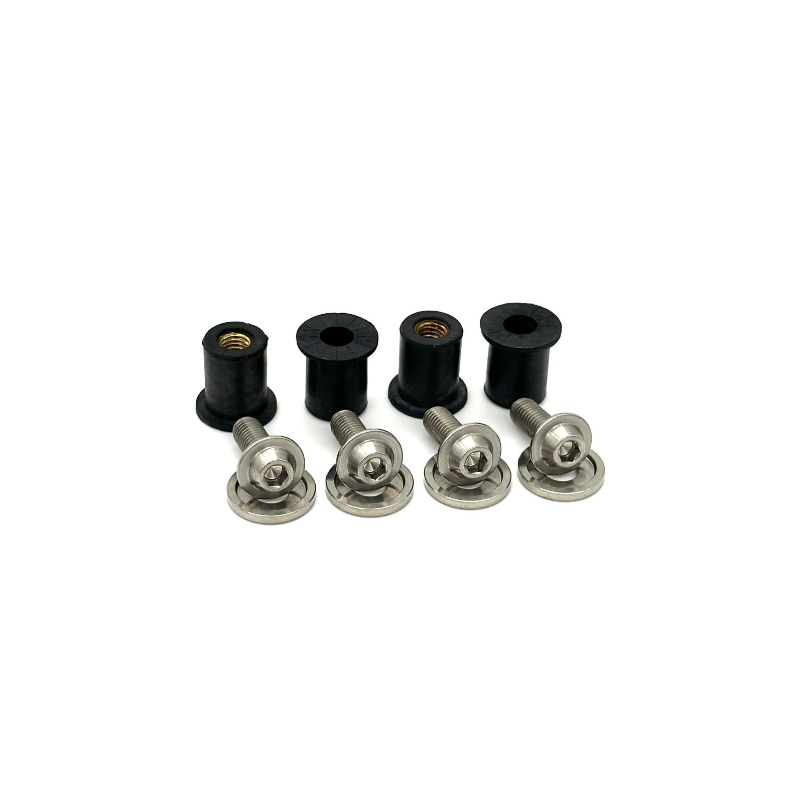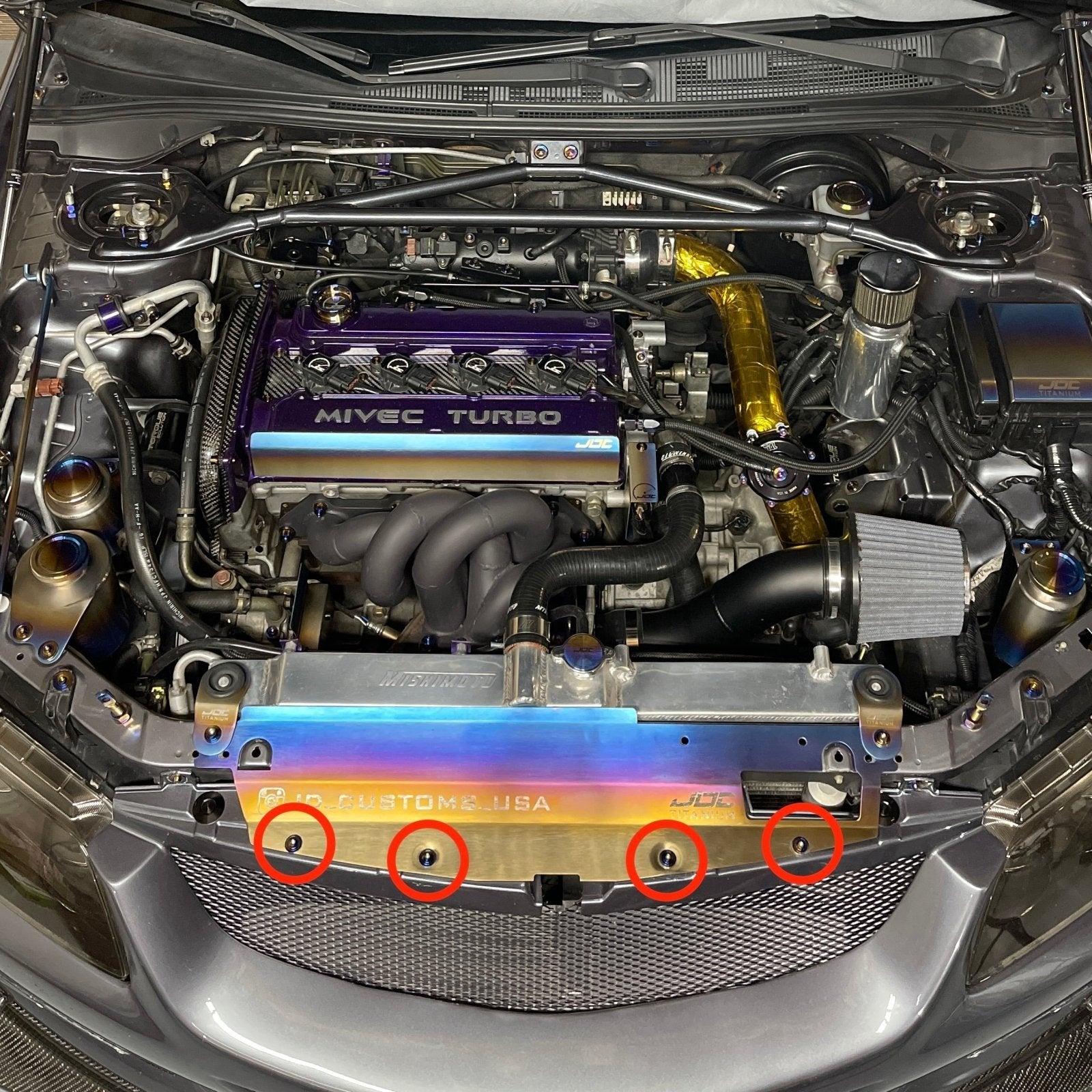This kit replaces the plastic clips on the radiator cooling shroud area with titanium hardware! Each kit comes with the hardware needed to add threads to each hole and allows you to replace plastic clips with titanium bolts. Each titanium piece is hand polished before receiving our proprietary anodizing process, which gives it the long-lasting vibrant colors we're known for!