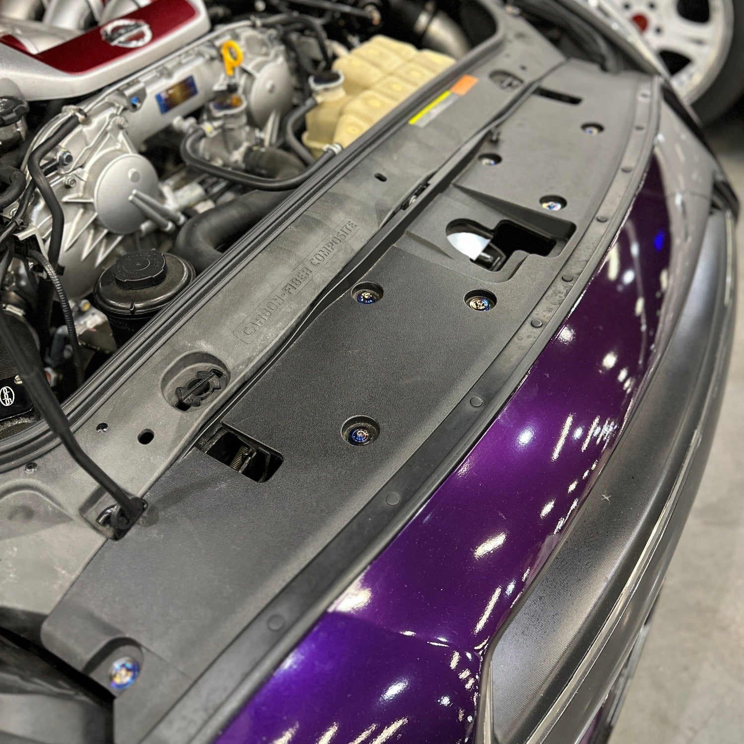 This kit replaces the plastic clips on the radiator cooling shroud area with titanium hardware! Each kit comes with the hardware needed to add threads to each hole and allows you to replace plastic clips with titanium bolts. Each titanium piece is hand polished before receiving our proprietary anodizing process, which gives it the long-lasting vibrant colors we're known for!