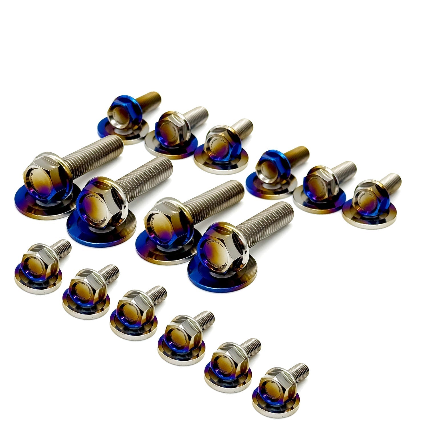 JDC Titanium Radiator Support/Front Brace Hardware Kit is an easy way to add an additional titanium flair to your engine bay! This kit replaces all of the factory radiator support/front brace hardware. Each piece is hand polished before receiving our proprietary anodizing process, which gives it the long-lasting vibrant colors we're known for!