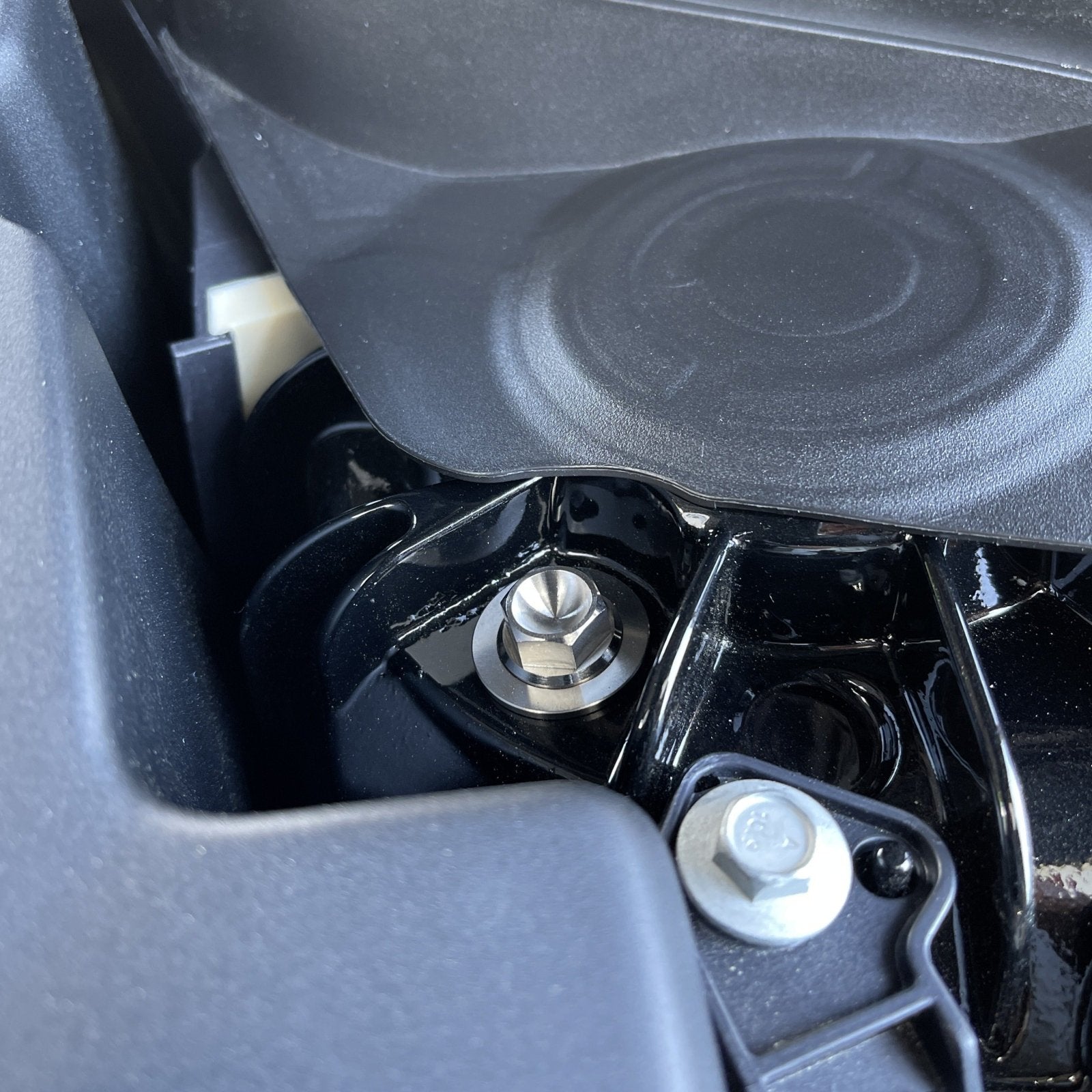 The JDC Titanium strut tower hardware kit replaces all 8 bolts and washers on the strut tower. Each piece is hand polished before receiving our proprietary anodizing process, which gives it the long-lasting vibrant colors we're known for! Select your option from the drop-down menu.