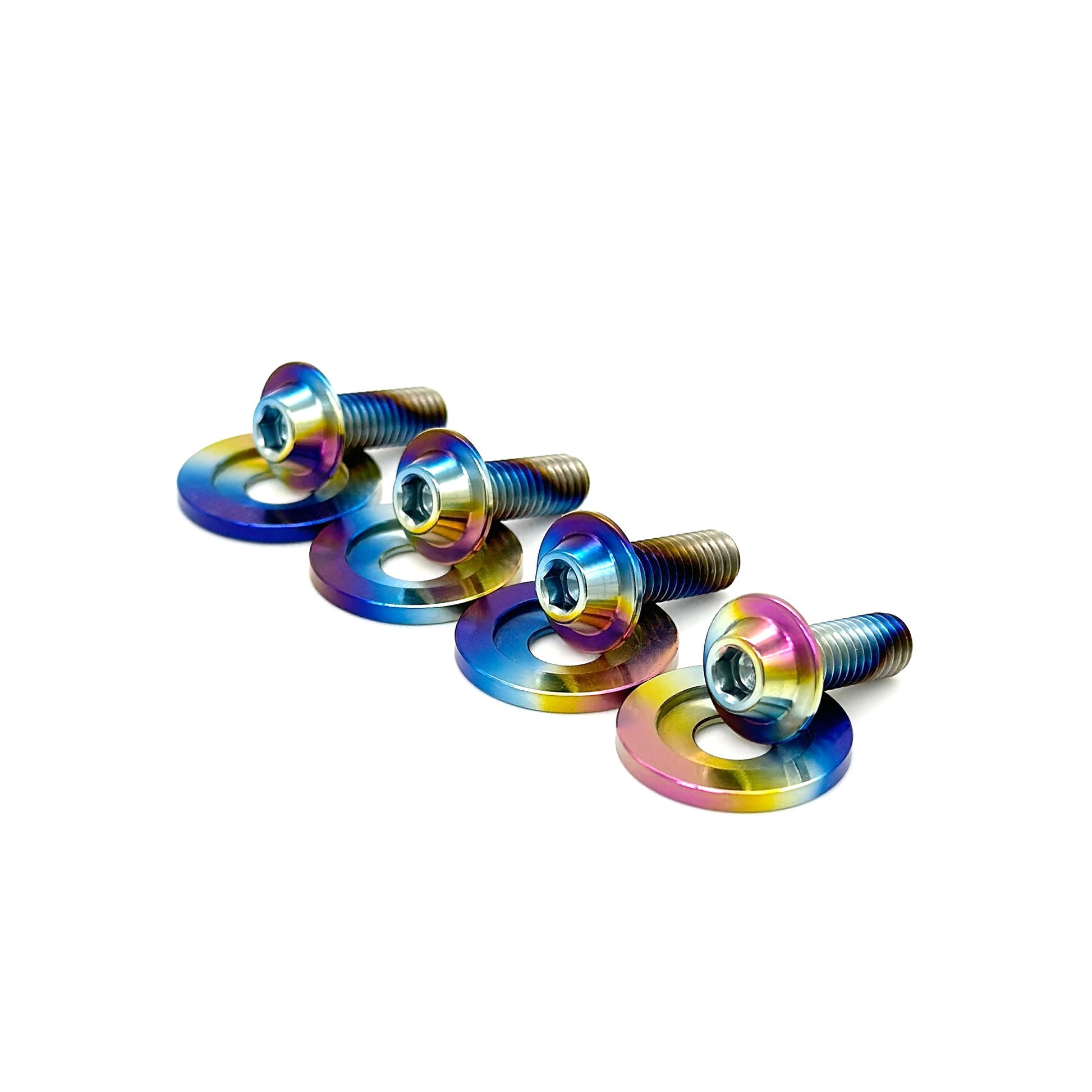 The JDC titanium trunk bracket hardware kit is a must-have for anyone changing out their trunk or replacing the stock hardware. The stock bolts are known to be very weak and usually strip out or even break off when being removed. This titanium replacement kit will hold your trunk in place and you'll never have to worry about them breaking or rusting!