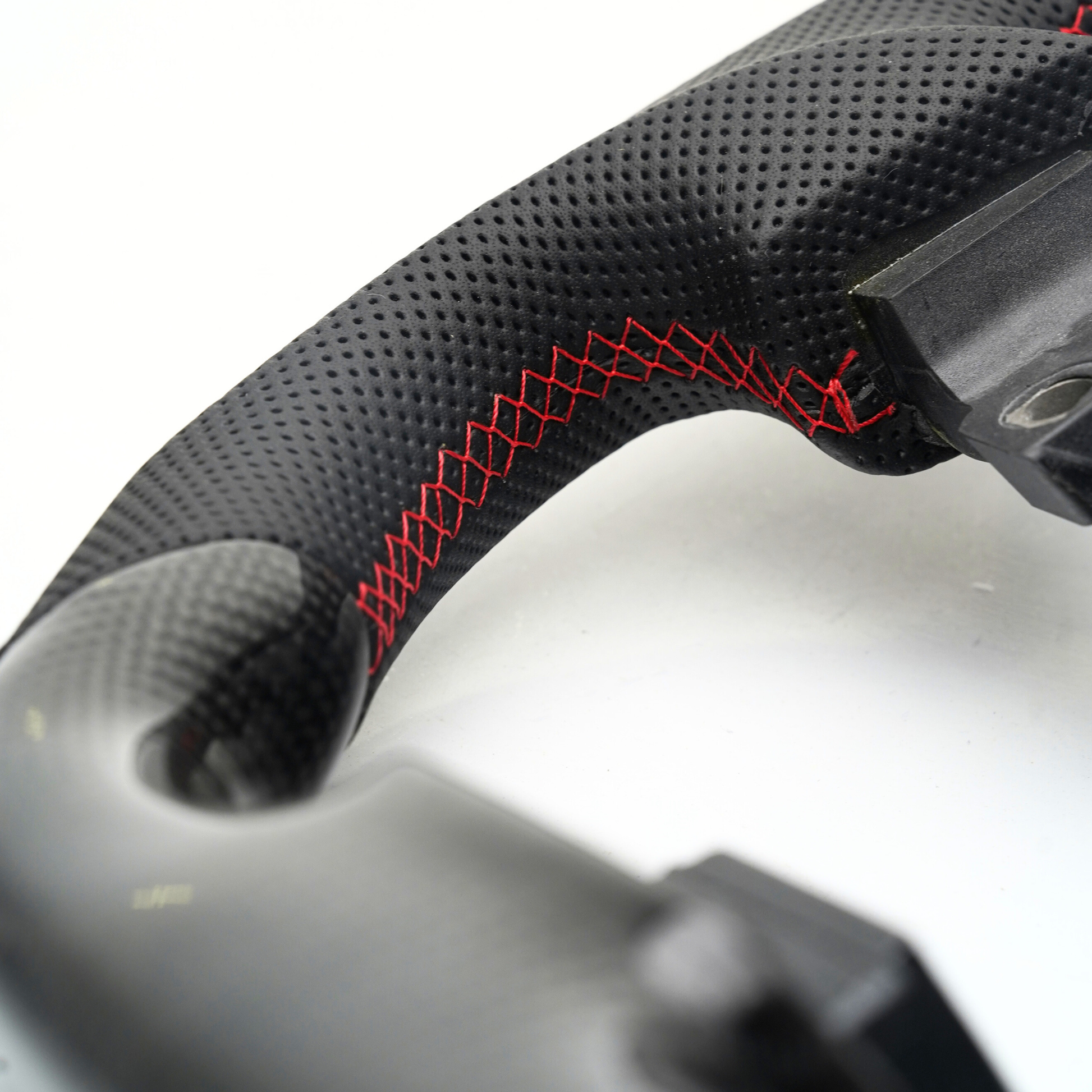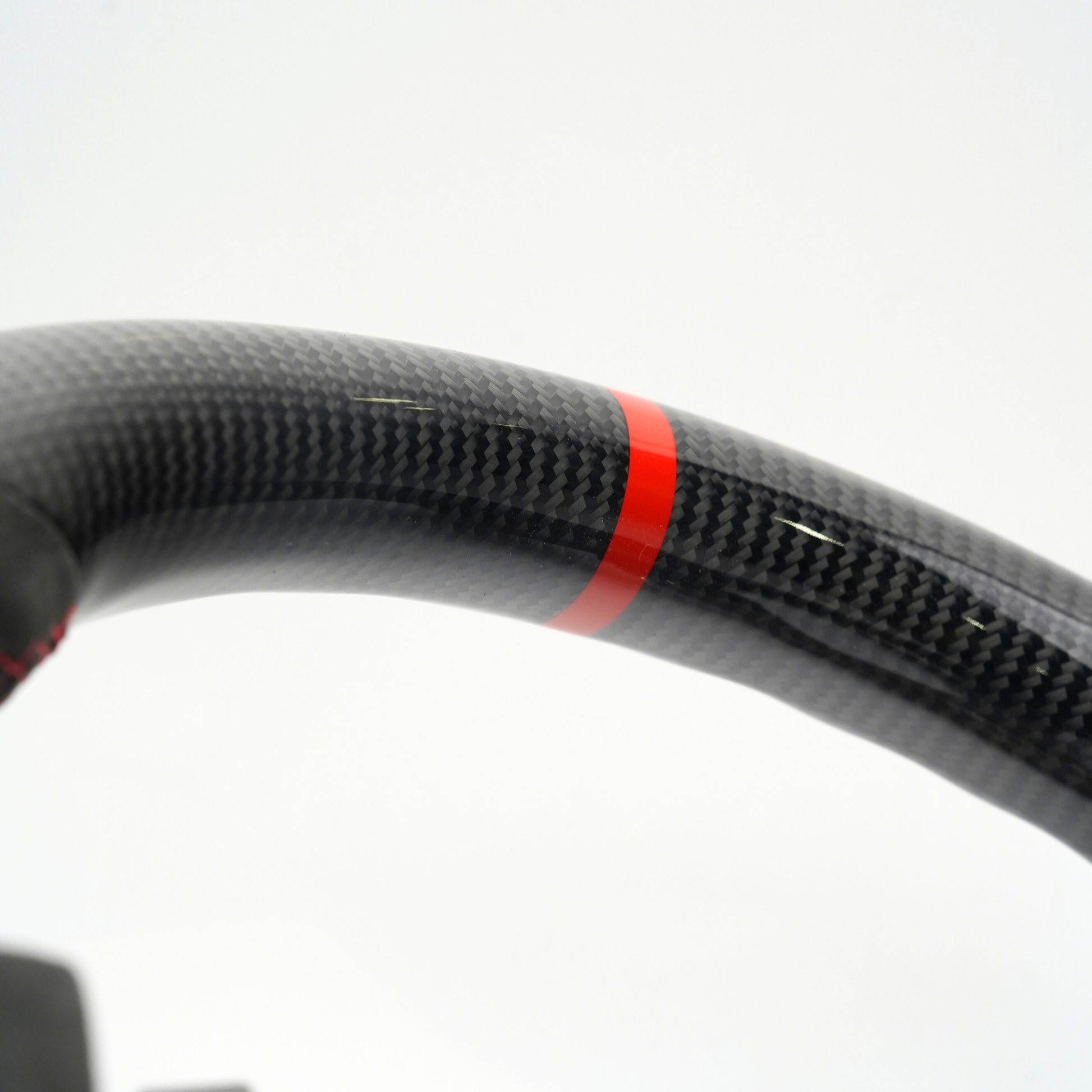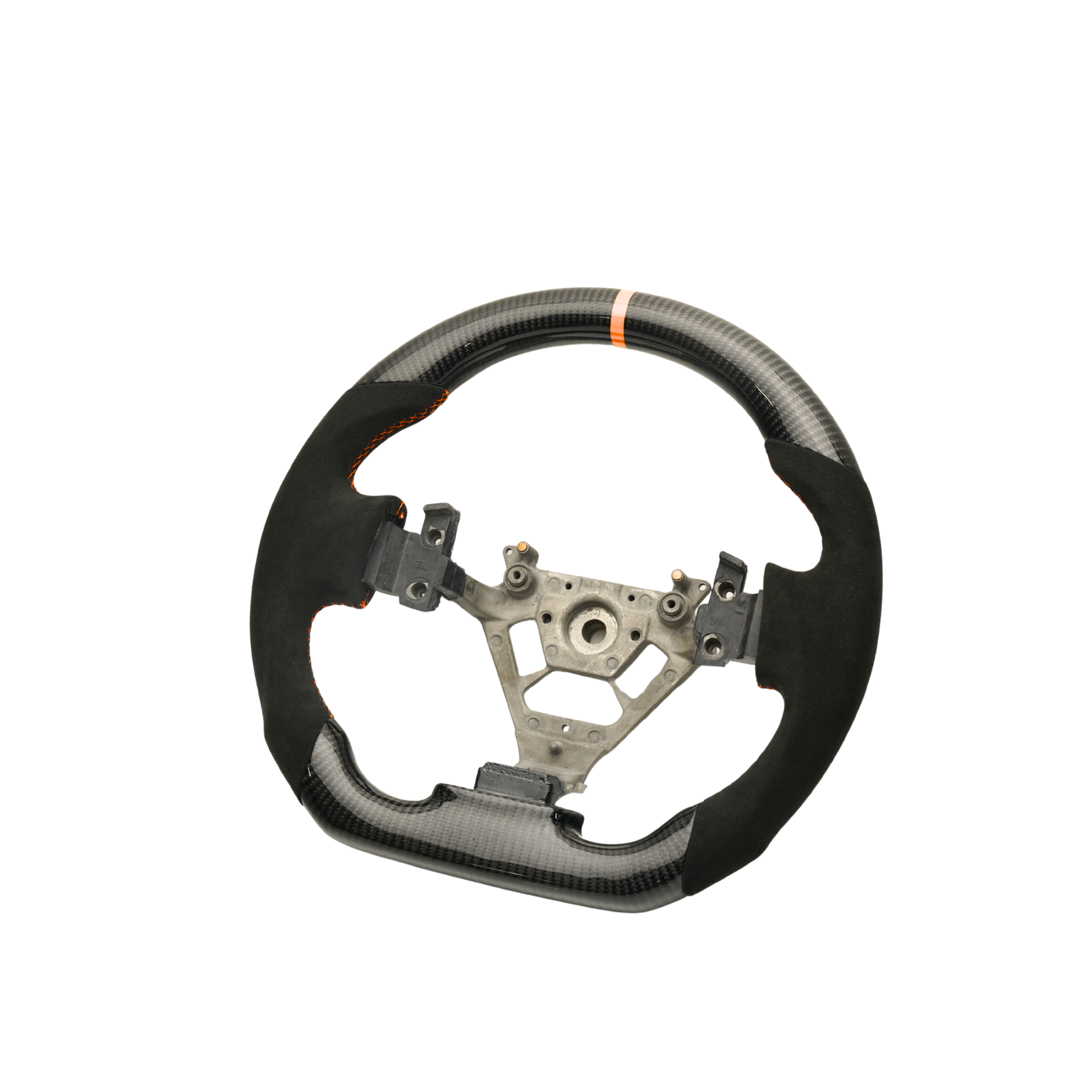 Built with a lightweight real carbon fiber top and bottom section, paired with your choice of premium leather or genuine Italian Alcantara grips, this steering wheel delivers the perfect balance of control, comfort, and motorsport-inspired styling. The contoured side grips enhance handling precision while maintaining OEM ergonomics and airbag compatibility.