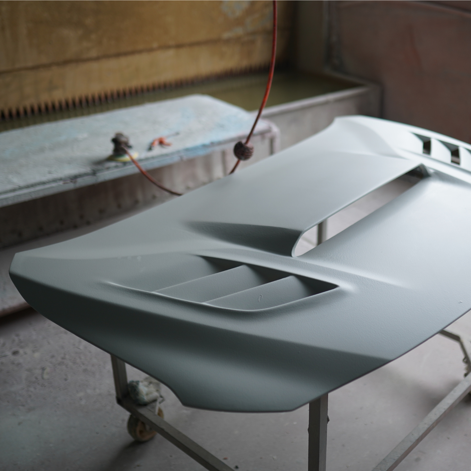 Taller Scoop: The hood features a taller scoop compared to the stock hood. This increased height enhances airflow to the engine, potentially improving performance and cooling.
