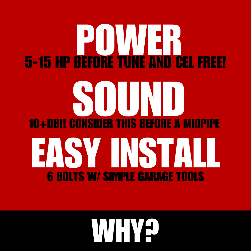 CEL Free: Yes! This intermediate pipe is designed to ensure that no Check Engine Light (CEL) is triggered, all while significantly reducing the exhaust restriction from your downpipe. Unlike most full downpipe systems, which are prone to throwing a CEL over time, this product provides a hassle-free solution.