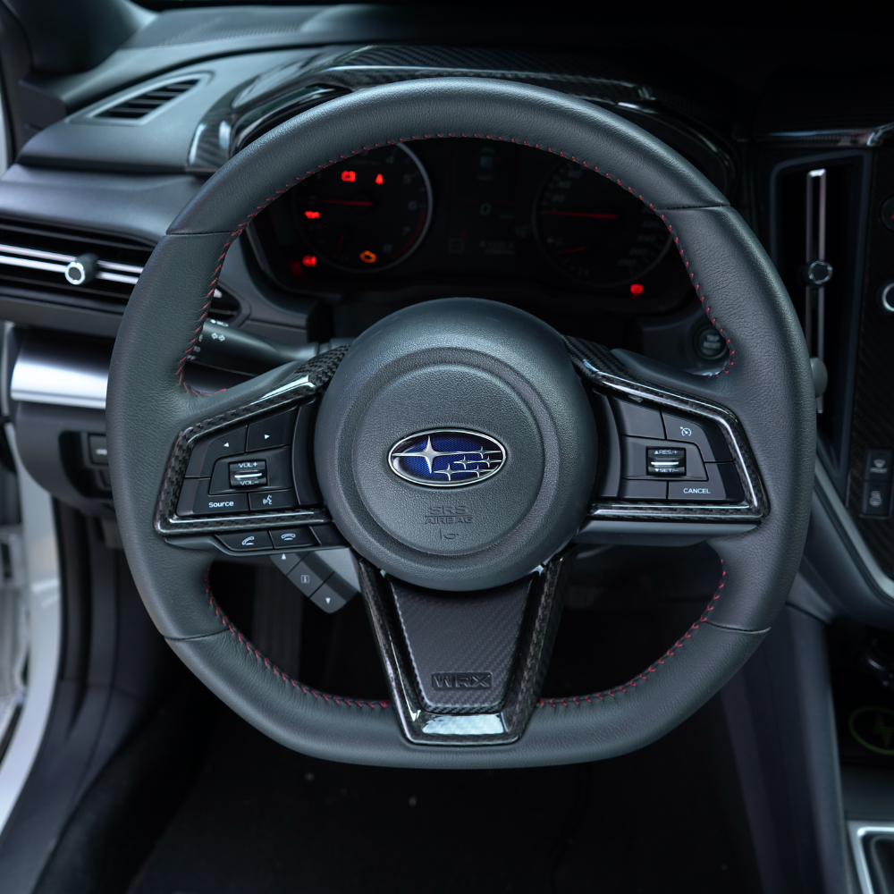 Precise Fitment: Engineered to perfection, these trim covers are custom-made to flawlessly fit the contours of your WRX's steering wheel. The perfect fit ensures a seamless integration, giving the impression of an OEM upgrade.