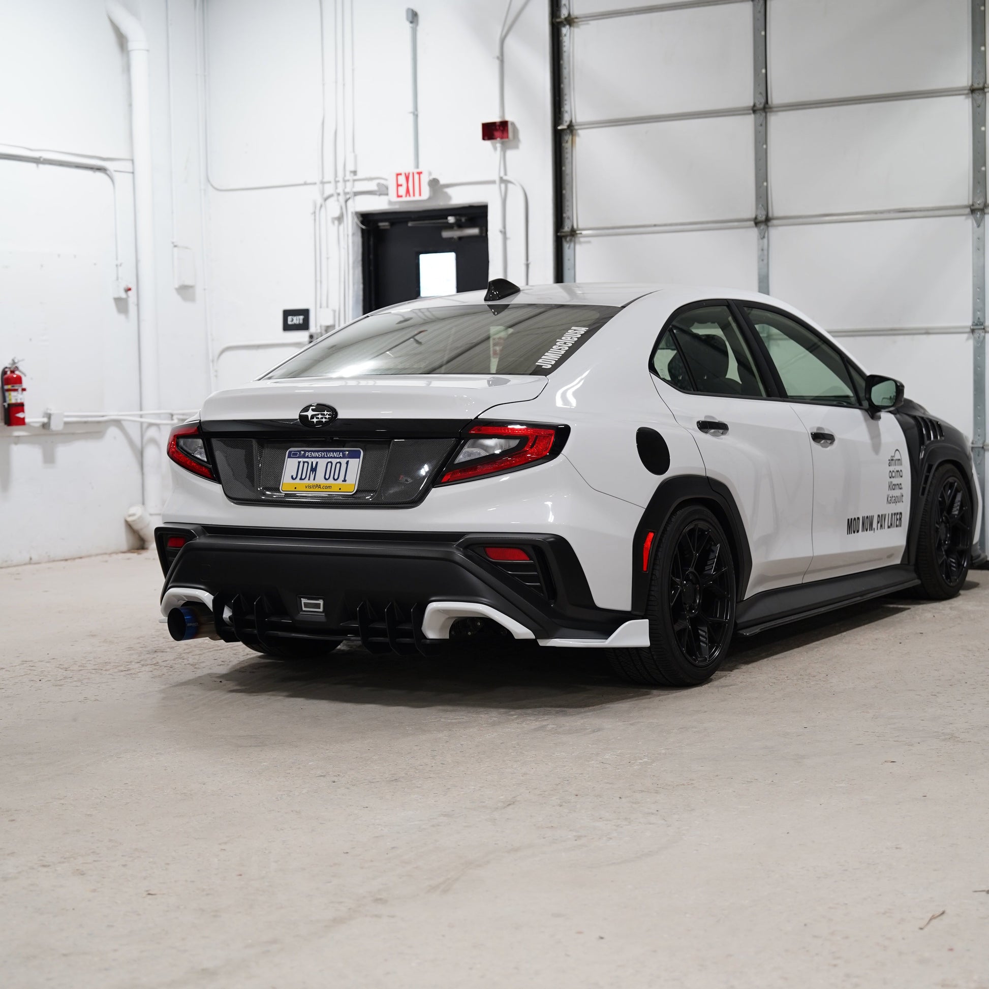 Designed with meticulous attention to detail, these rear spats not only complement the factory lines of the WRX but also improve aerodynamics by directing airflow more efficiently around the rear of the vehicle. This helps enhance stability and reduce drag, resulting in improved performance on the road or track.
