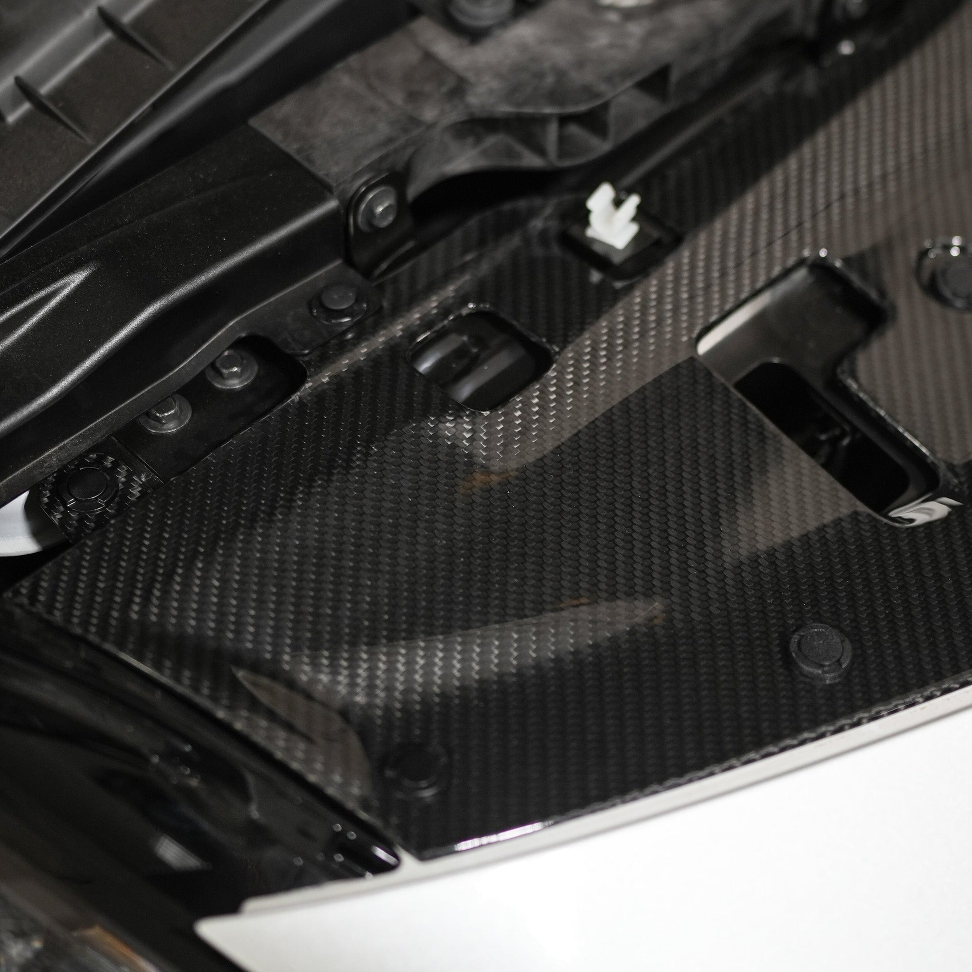 Carbon Fiber Construction: Crafted from premium carbon fiber materials, this radiator shroud not only adds a touch of sophistication to your engine bay but also offers lightweight durability. Enjoy improved aesthetics without compromising on strength.
