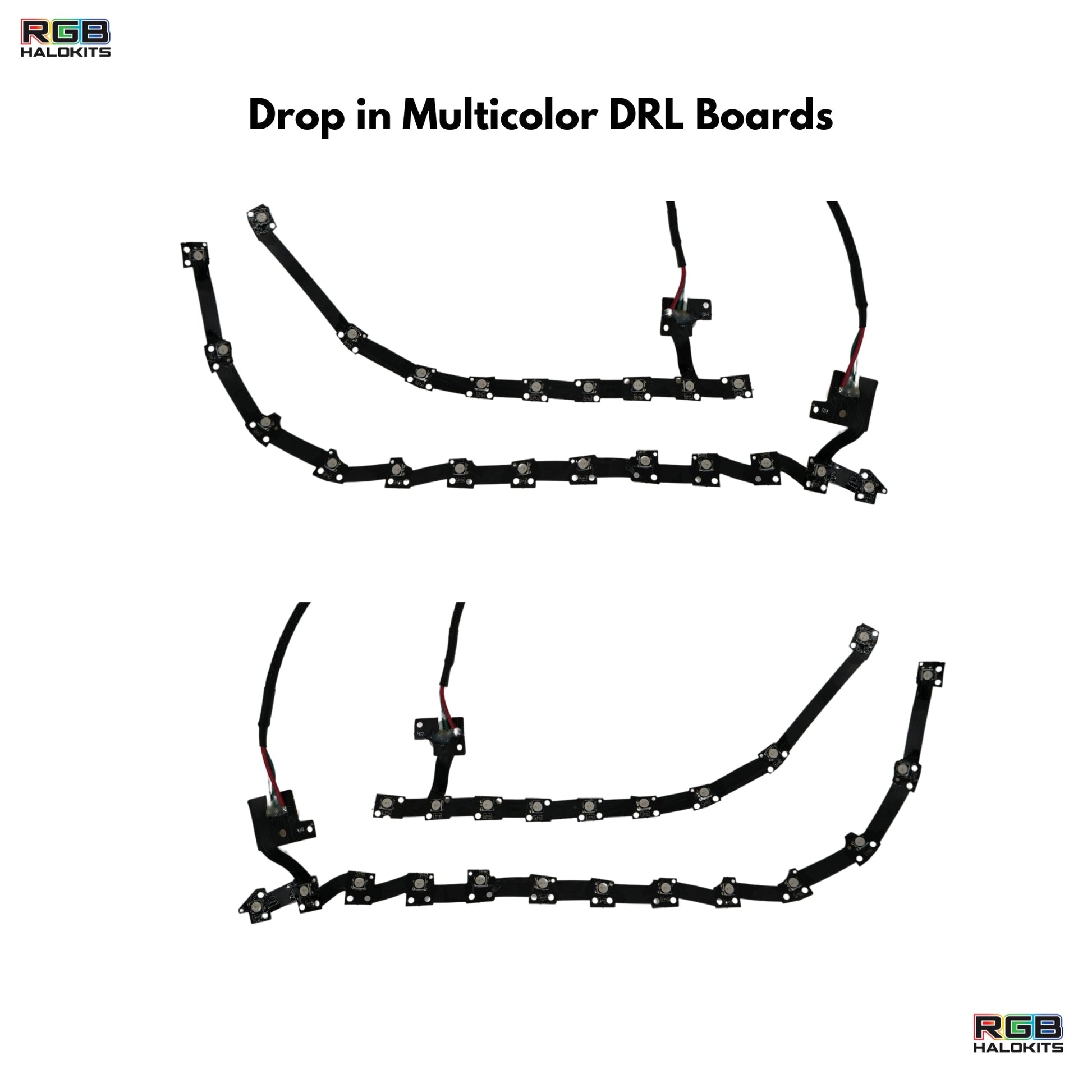 Our Multicolor DRL Board Kit replaces that internal strip with a high-performance Flow Series circuit board capable of vibrant, flowing RGB animations. This allows you to dramatically enhance your vehicle's appearance while maintaining your OEM headlight housing.