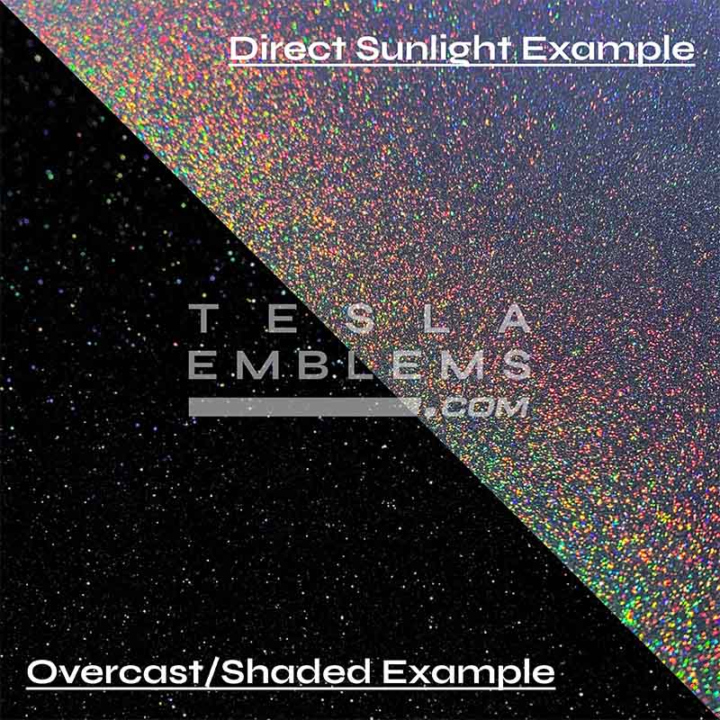 Upgrade your Tesla's door handles with custom KPMF Morpheus Black decals. Color shifting particles change color in the light!