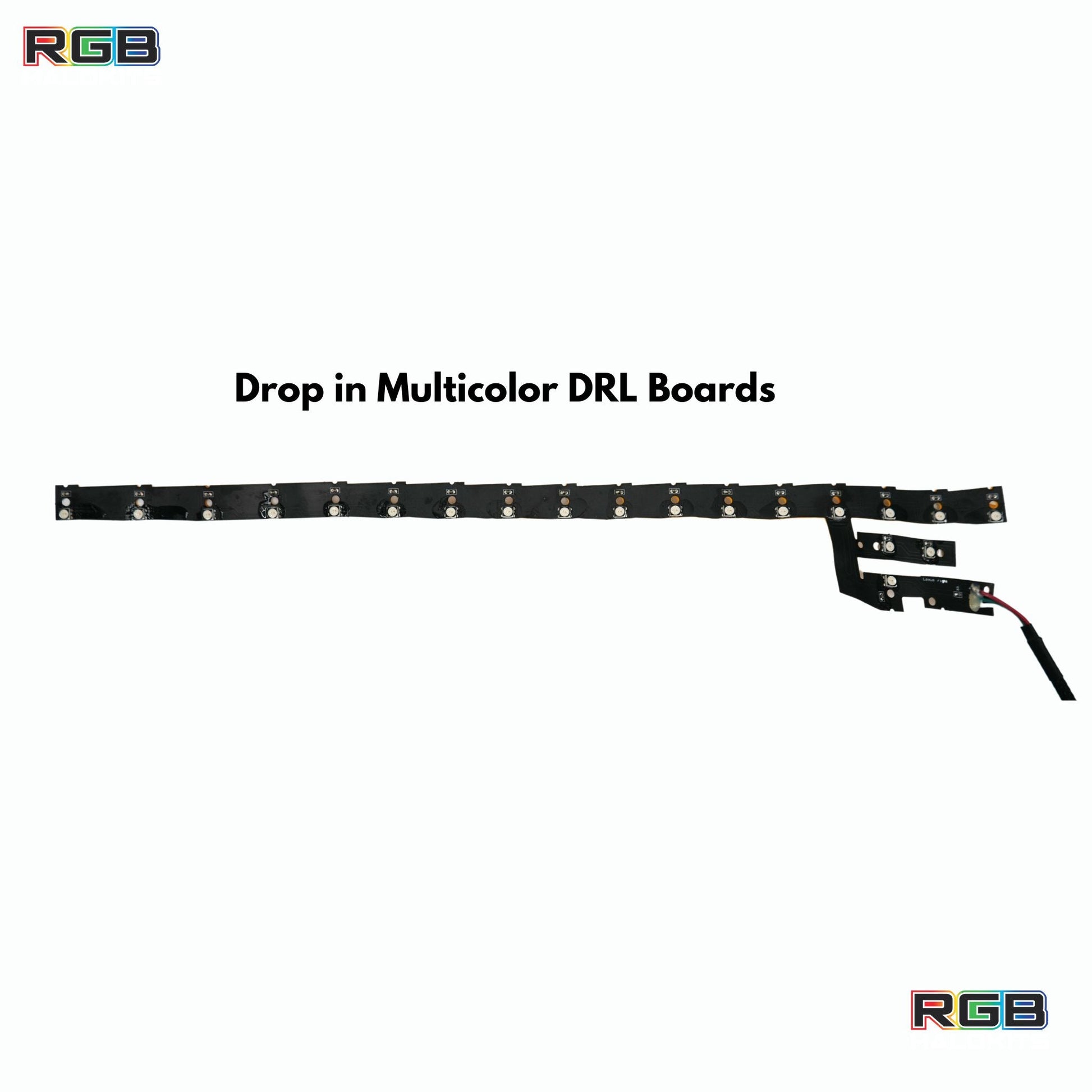 Our Flow Series boards replace those with individually addressable LEDs, unlocking full control over colors and motion effects. From subtle glows to full-on chase modes, this mod transforms your headlight DRLs into a visual centerpiece.