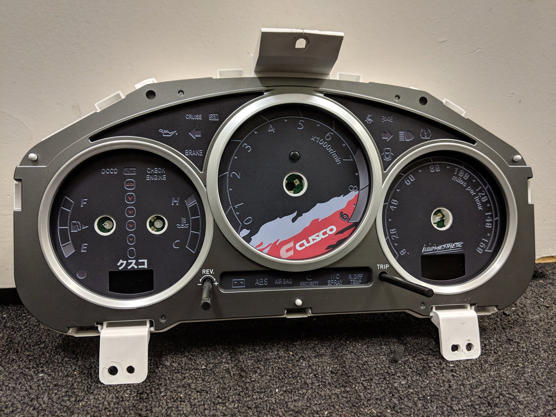 Cusco-Inspired gauge faces for most Impreza WRX/STI models. THESE ARE LIMITED TO 10 UNITS PER MODEL AND COME WITH AN ILLUMAESTHETIC T-SHIRT.