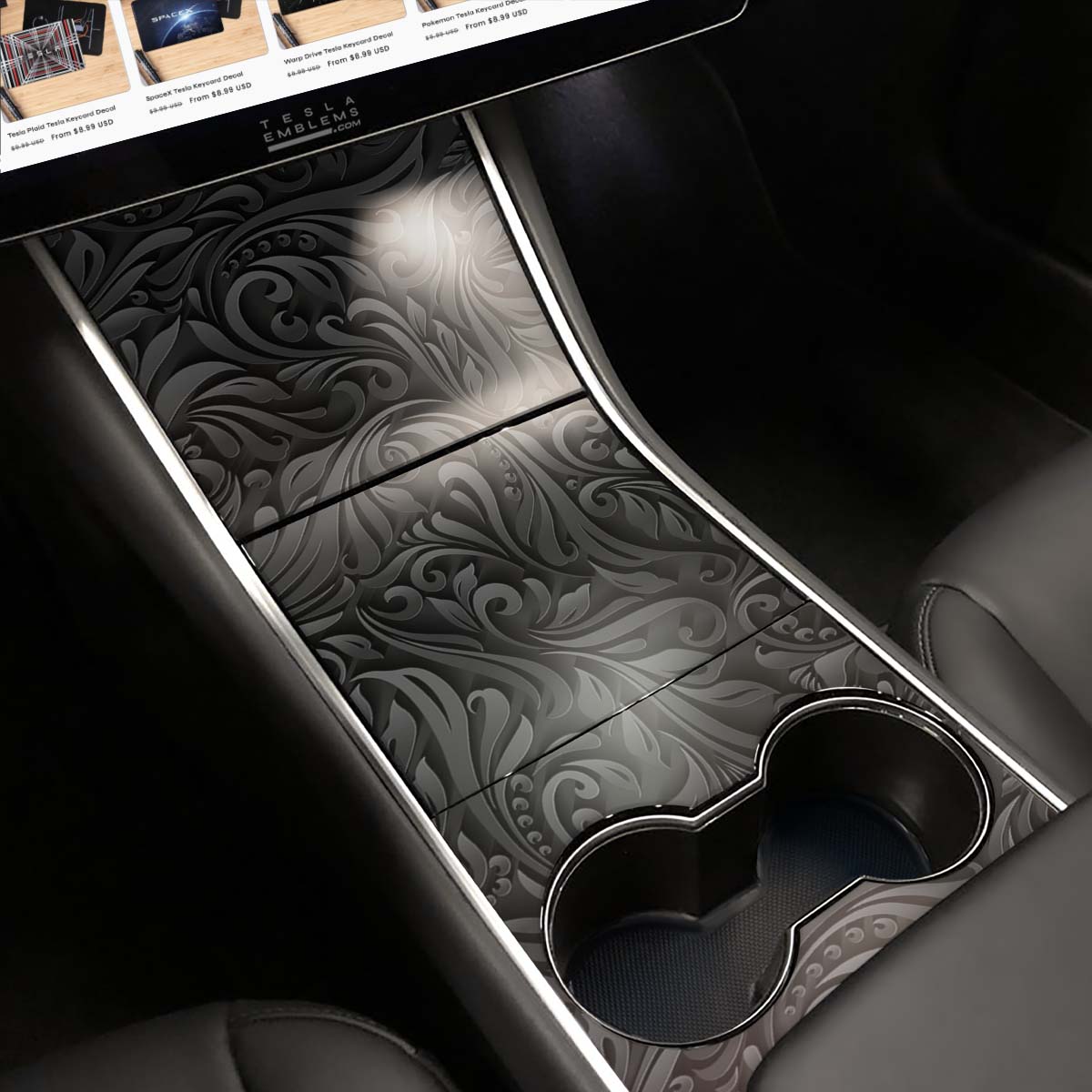 Embrace the mystique of midnight with our Nocturnal Petals Tesla center console wrap design.