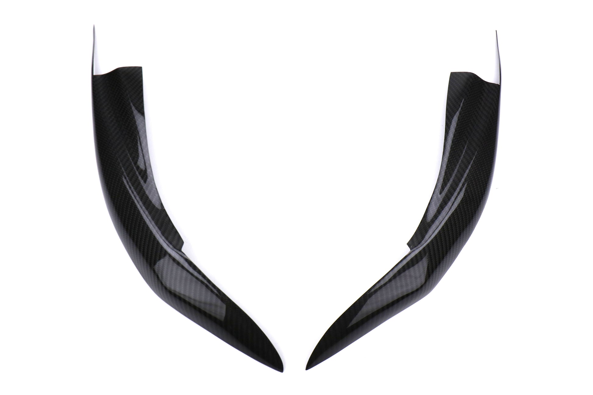 These carbon fiber eyelids completely transform the look of your vehicle. Headlights largely affect the styling of a vehicle and most people will notice any changes to them immediately. Feature a single vortex generator similar to the one present on the stock tail lights. These install in minutes with supplied 3M automotive grade double sided adhesive. They look great with other carbon fiber accessories as well!