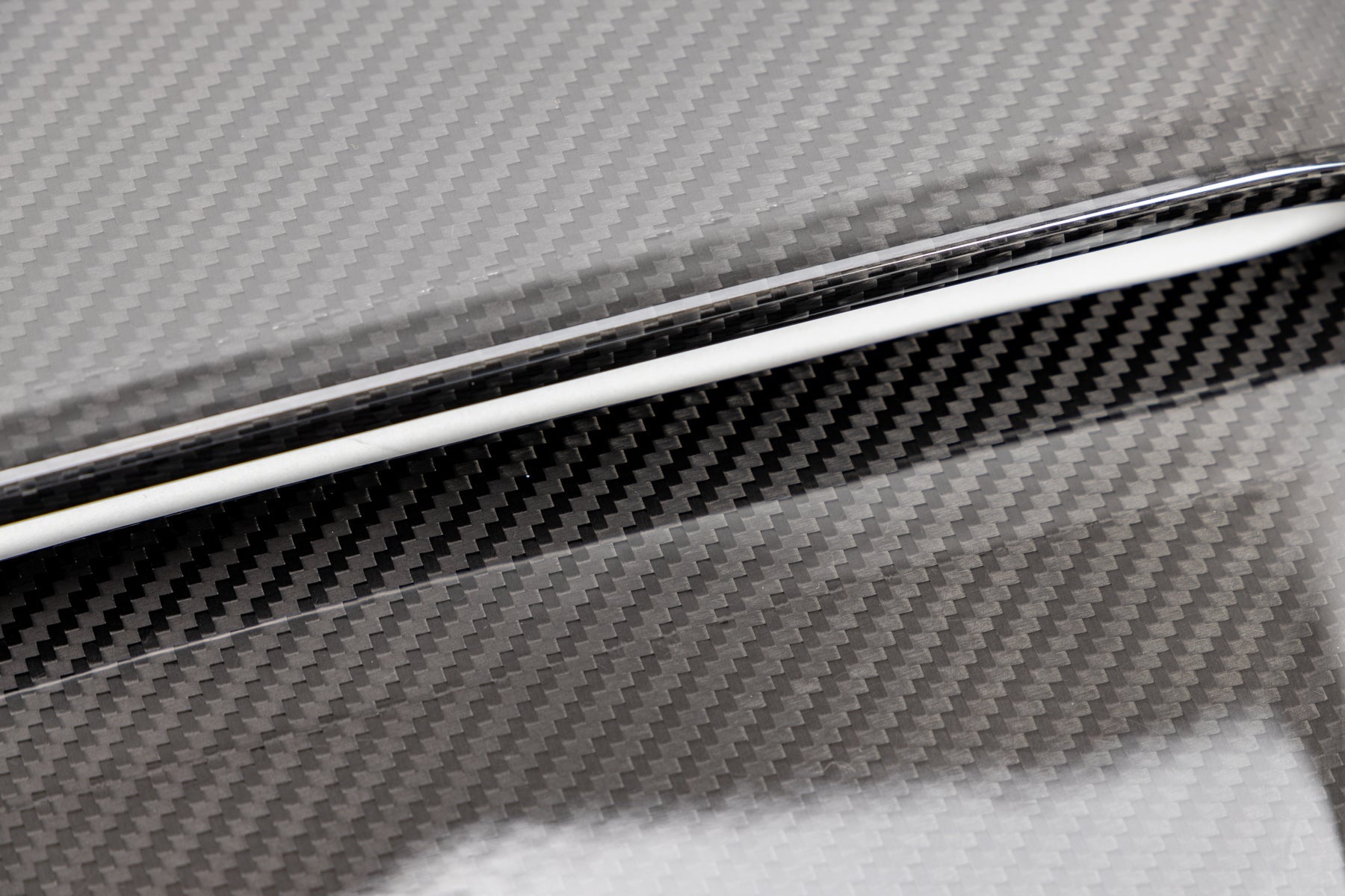 - Glossy carbon fiber finish