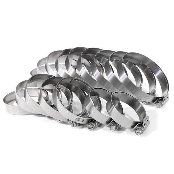 The clamps included with the PERRIN FMIC are standard on all PERRIN intercooler kits. They are designed for uniform clamping at all points around the band. Never worry about having to re-tighten down the road, plus each PERRIN clamp is made in the USA and has the torque spec engraved on each one.